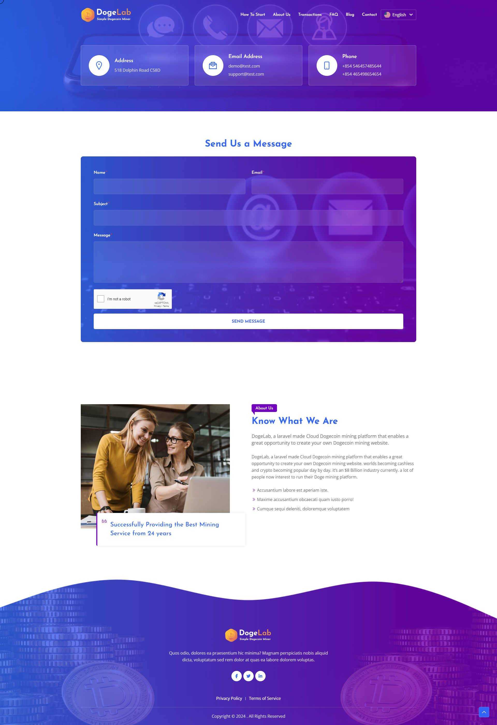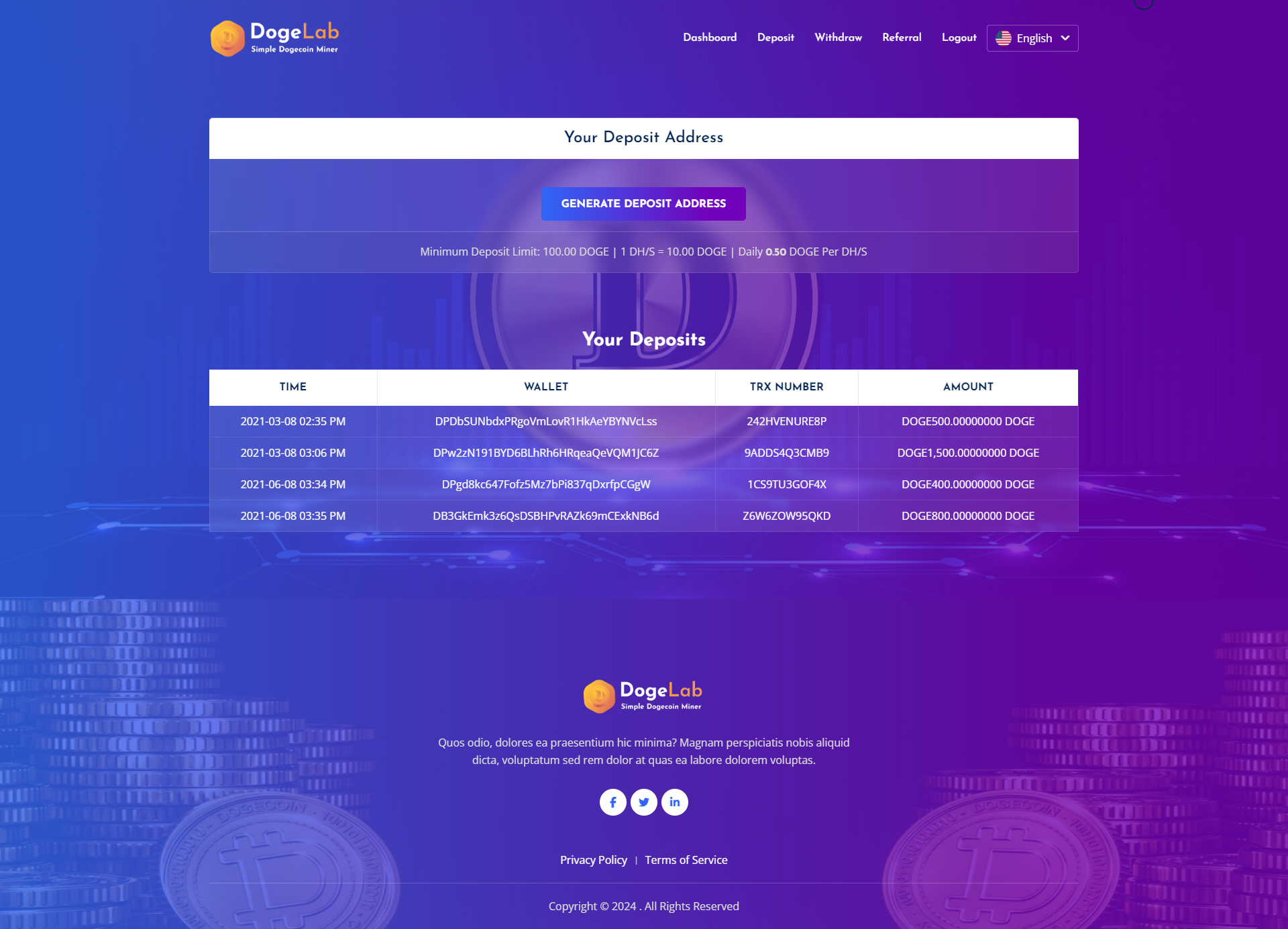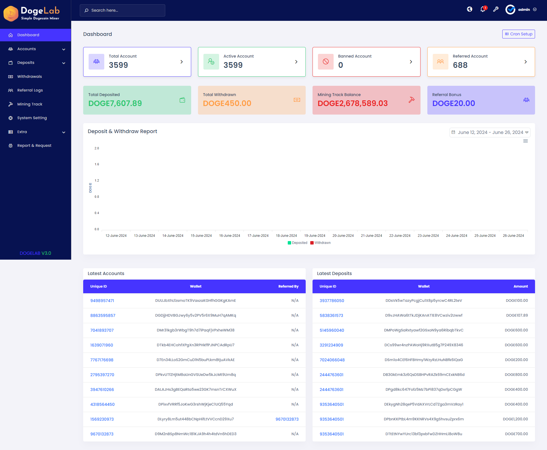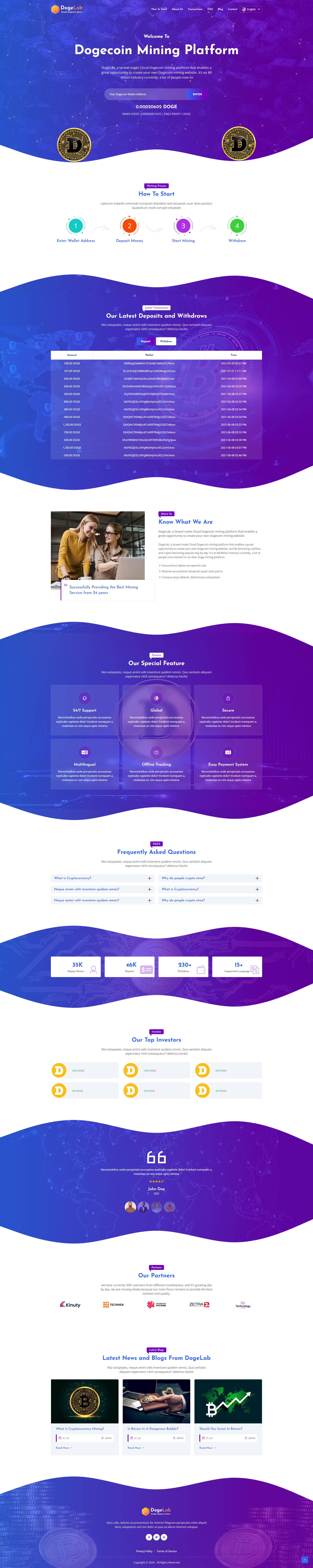 DogeLab is a powerful Laravel-based Cloud Dogecoin Mining Platform designed to help you quickly and easily launch your own professional Dogecoin mining website. As cryptocurrency adoption continues to rise, DogeLab provides a complete, ready-to-go solution with a fully responsive design, intuitive admin panel, high-level security, interactive user interface, plugin support, LiveChat integration, automatic payment gateways, and more. Skip the high development costs—DogeLab empowers you to manage user profits, mining rules, and platform operations effortlessly. Get your copy of DogeLab today and start building your cloud mining platform with confidence!